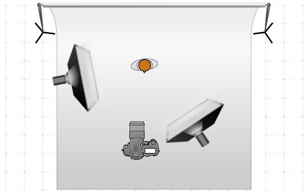 placed a 5 - foot roll of Black paper in the background, supported by two light stands with an extender poll
